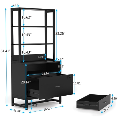 Vertical File Cabinet, 2 Drawers Filing Cabinet with Open Shelves