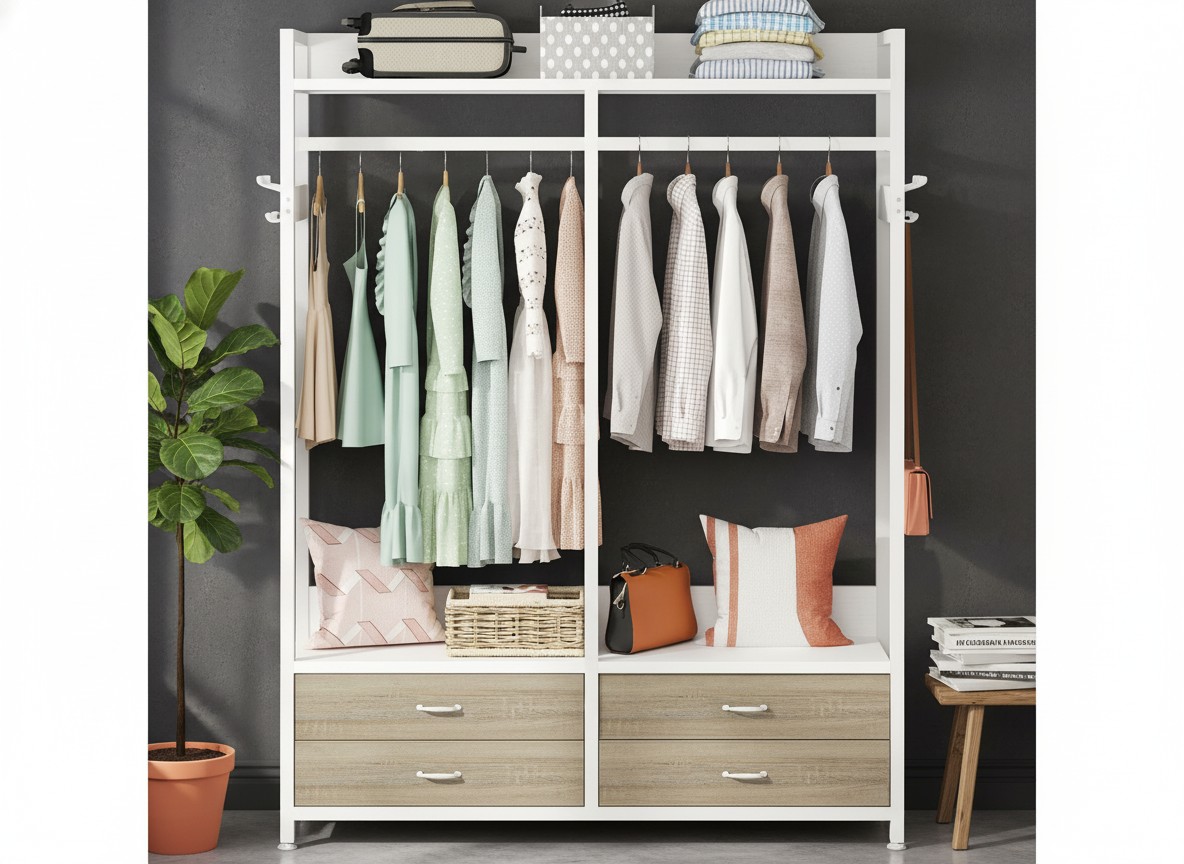 Freestanding Closet Organizer, Garment Rack with Drawers & Shelves